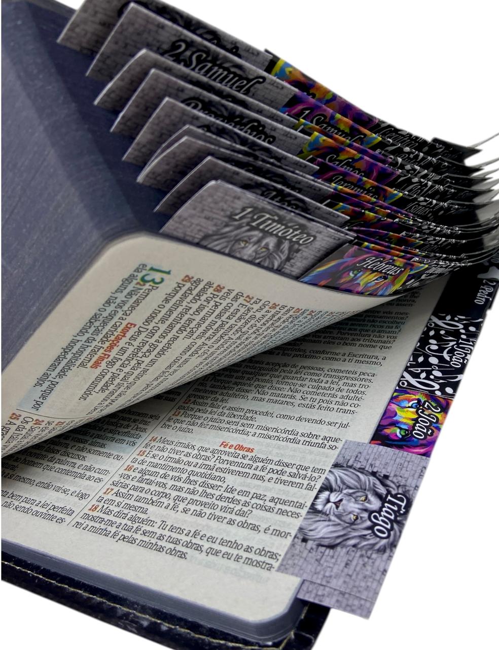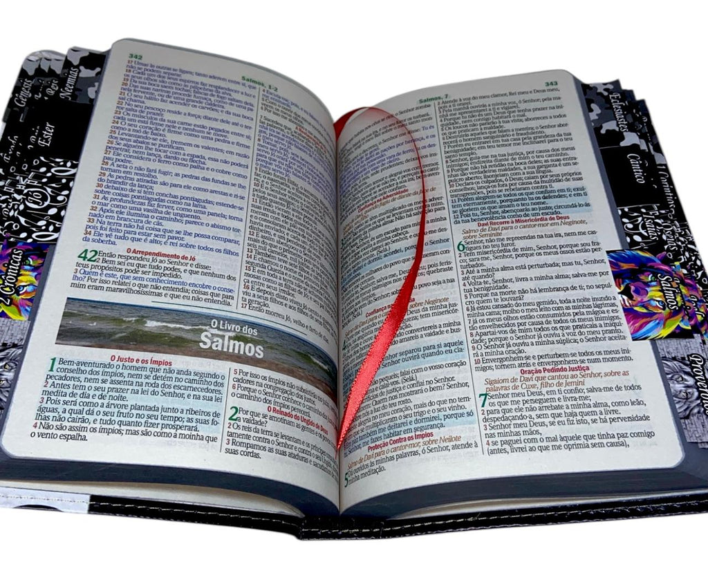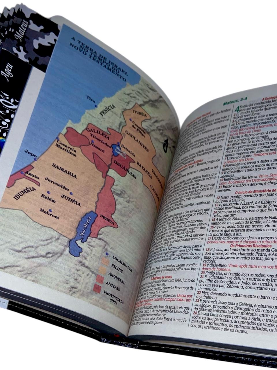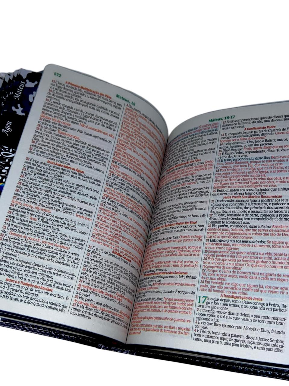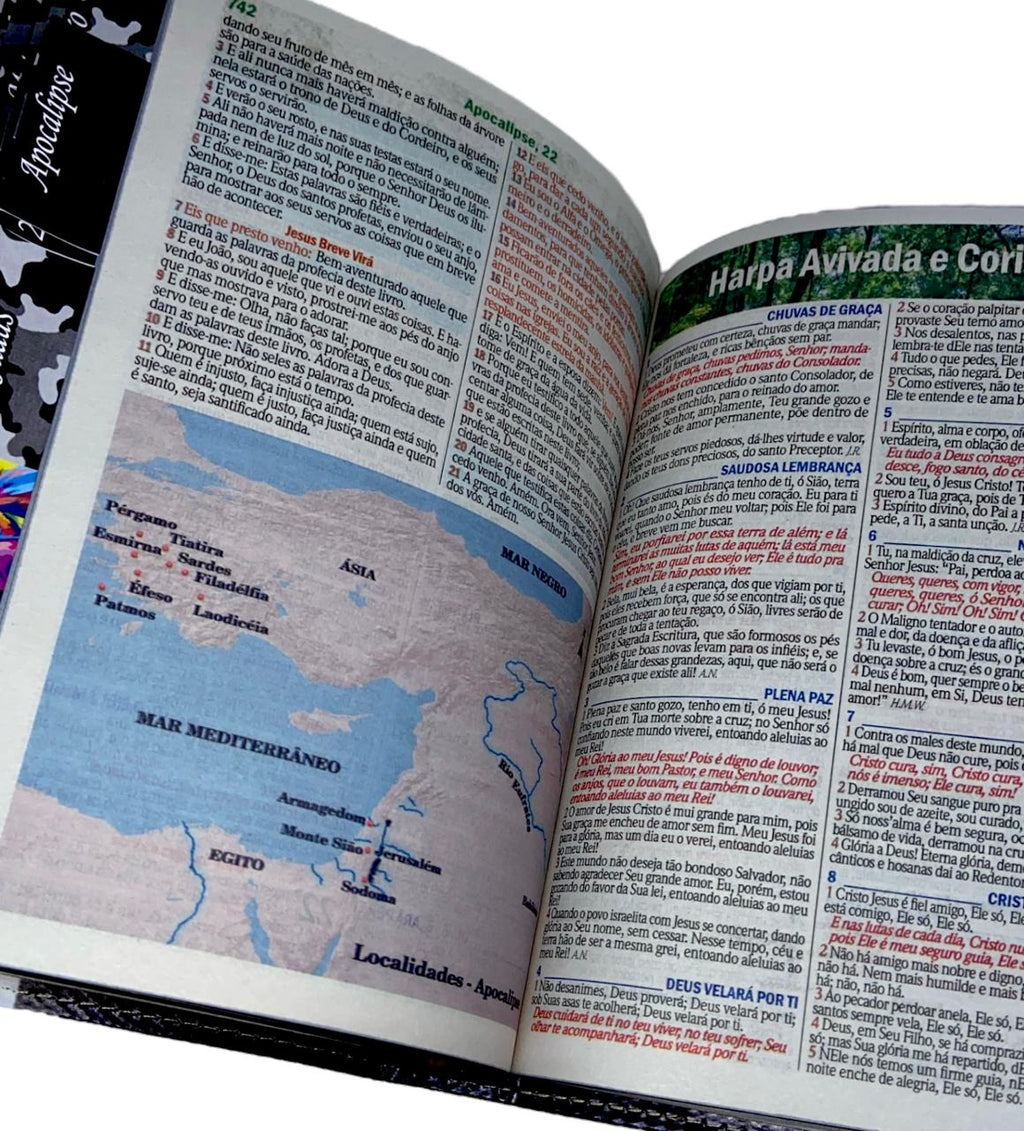 | Possuí Harpa Avivada e Corinhos e contém as palavras de Jesus em destaque, sendo mais fácil a localização dos ensinamentos do nosso Senhor Jesus.