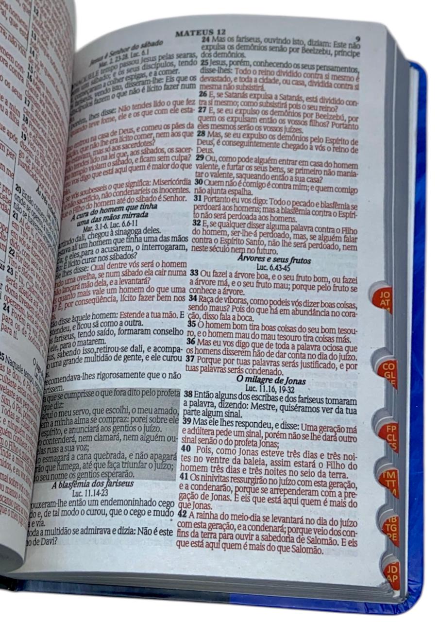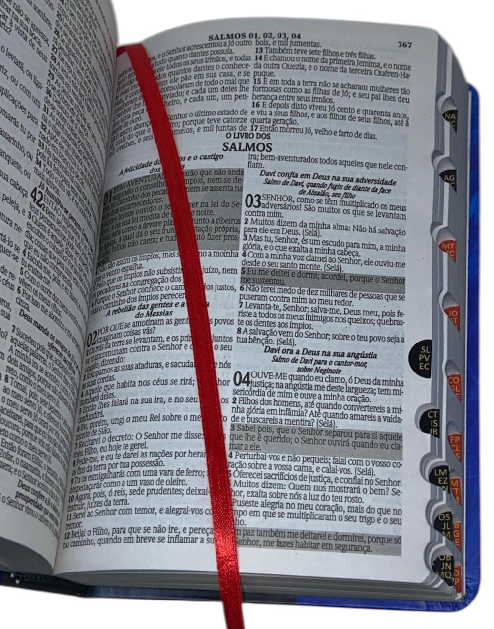 | Com o Design leve, possui letra gigante, Índice lateral para localizar rapidamente cada livro, Harpa Pentecostal e Promessas destacadas, facilitando a identificação e enriquecendo sua experiência de leitura.