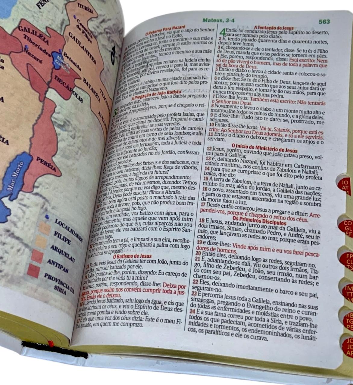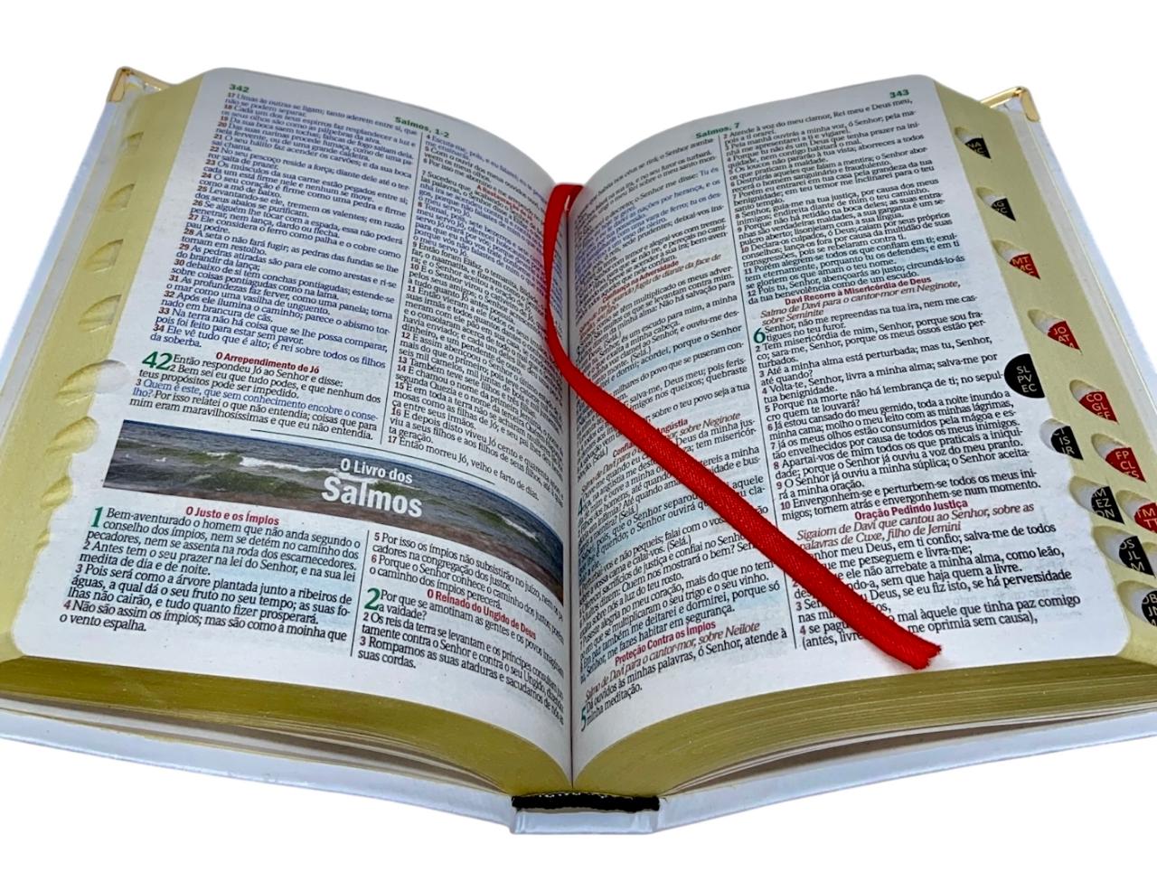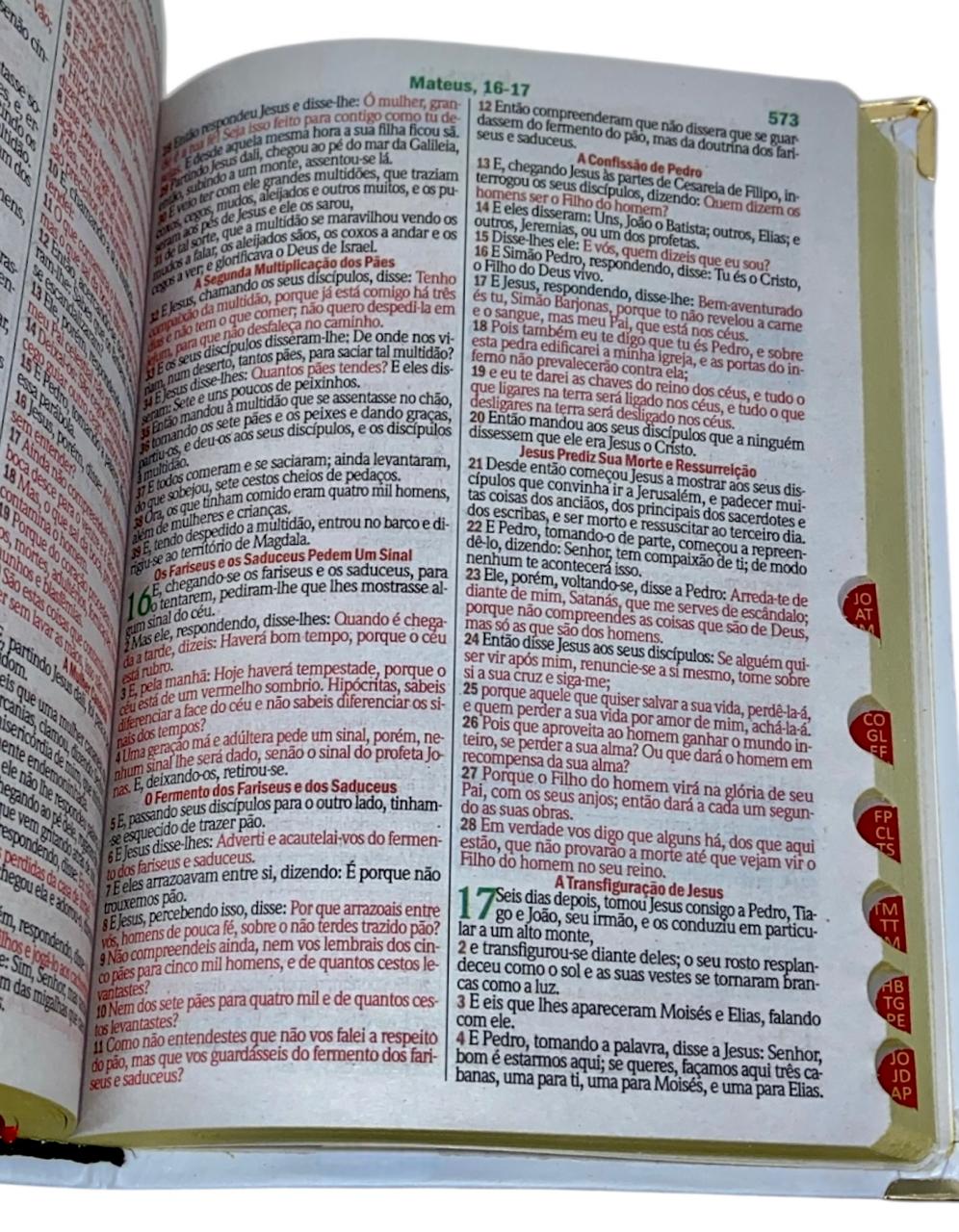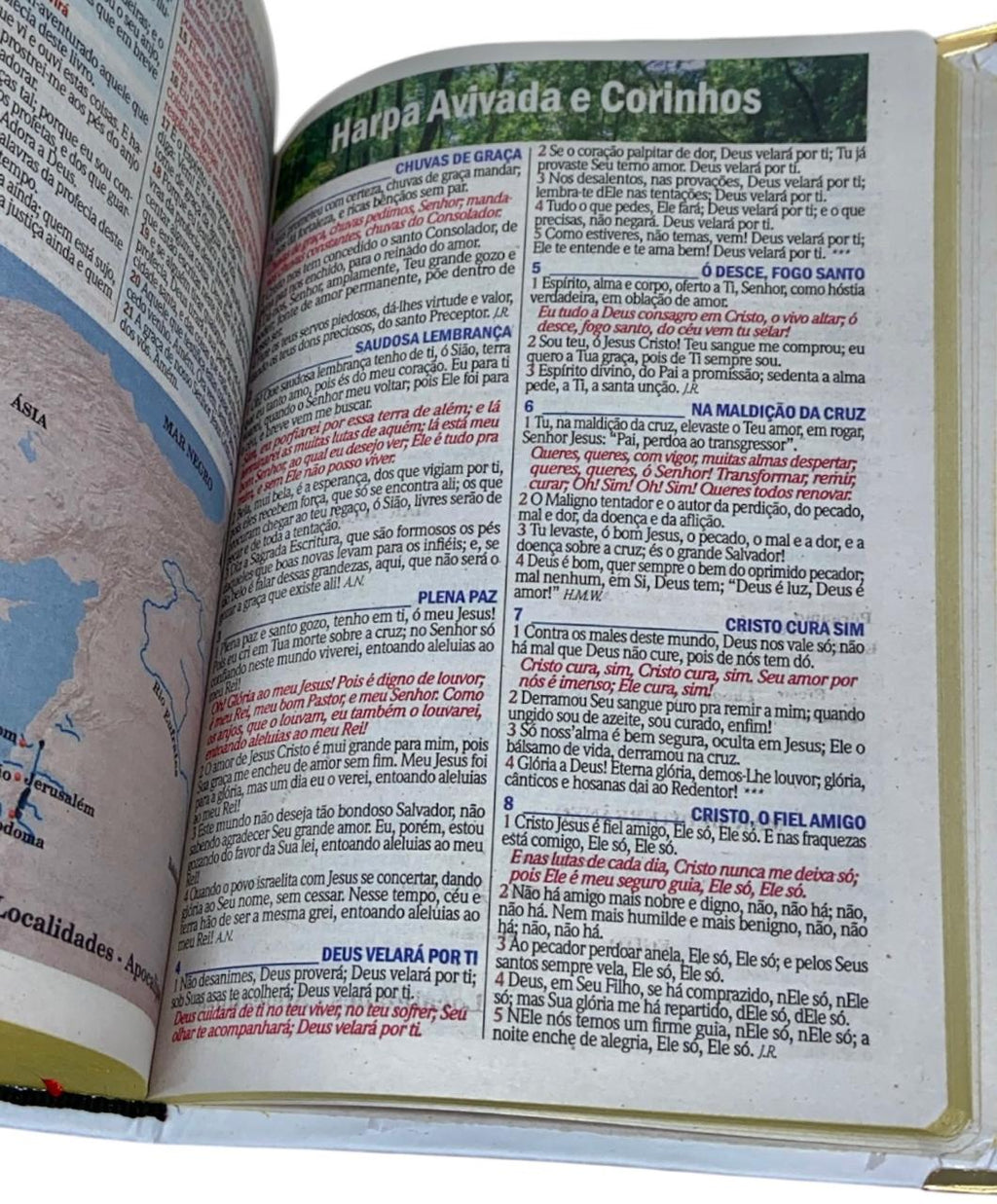 |   Com o Design leve, possui letra gigante, que torna a leitura suave, Índice lateral para localizar rapidamente cada livro, Harpa Avivada e Corinhos, com as palavras de Deus e de Jesus em destaque, facilitando a identificação e enriquecendo sua experiência de leitura. Perfeita para presentear e abençoar casais.