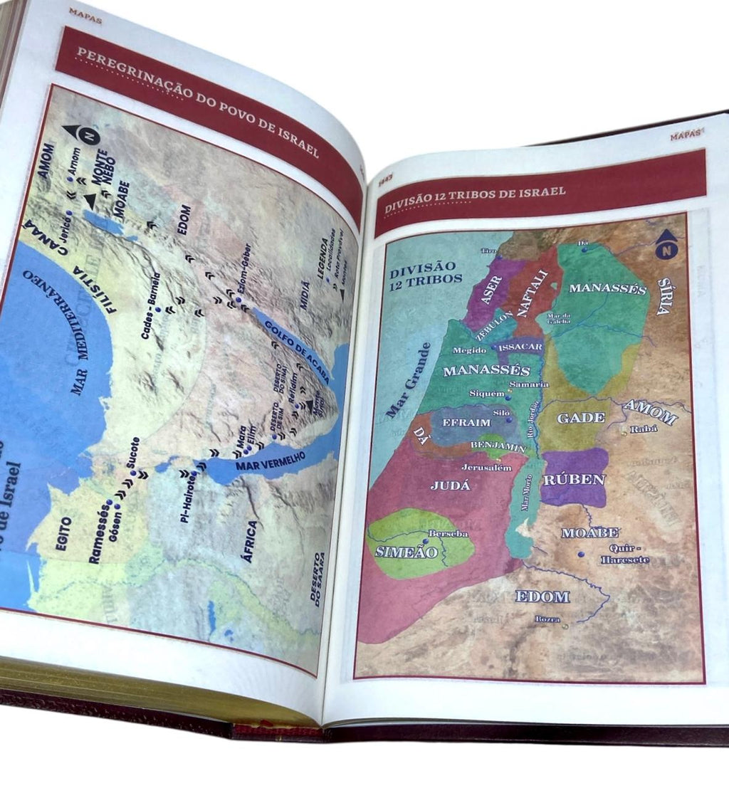 Quadros e Mapas que enriquecem a compreensão histórica e geográfica da Bíblia;