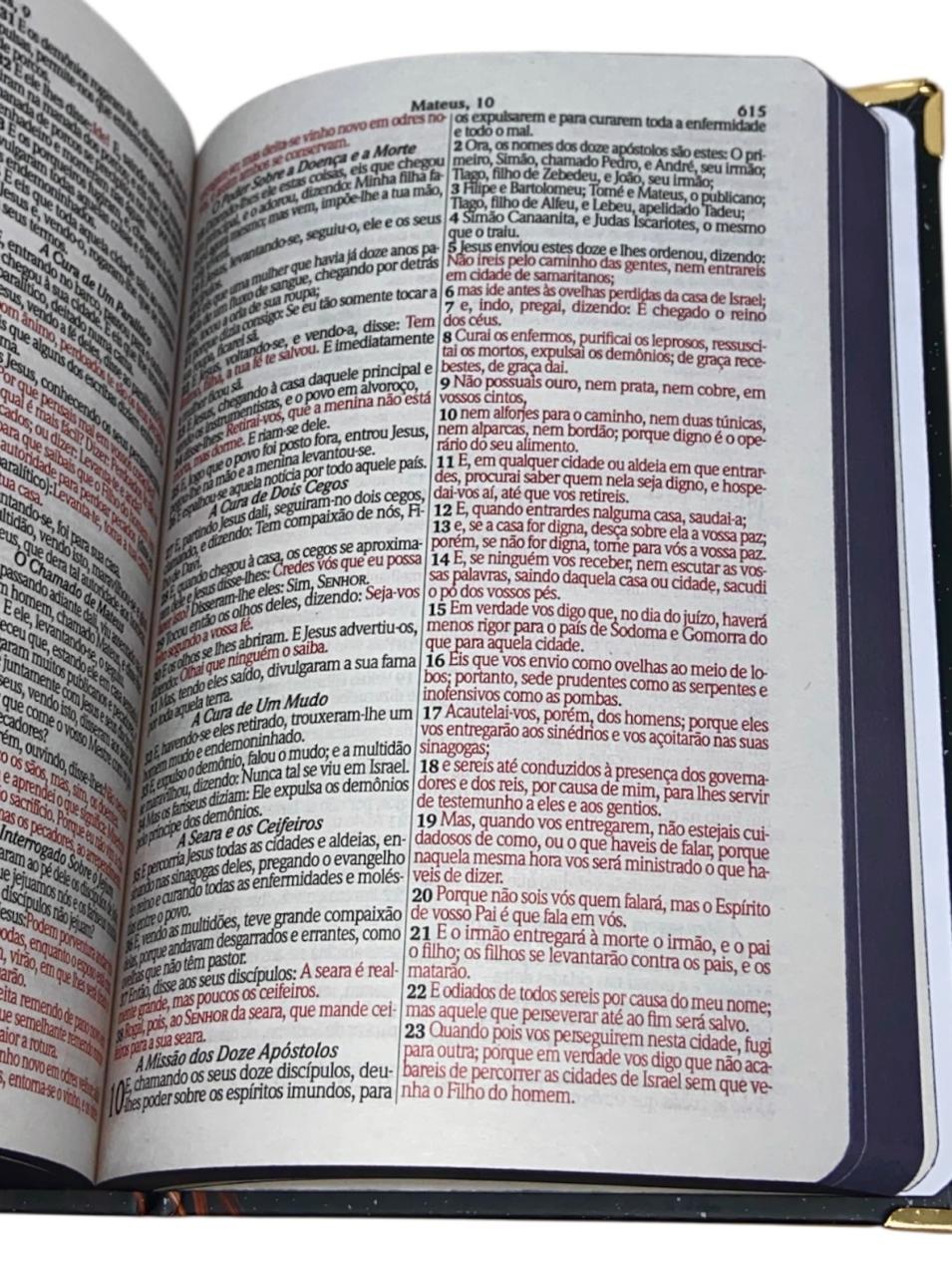 |   Possuí Harpa Avivada e Corinhos e contém as palavras de Jesus em destaque, sendo mais fácil a localização dos ensinamentos do nosso Senhor Jesus.