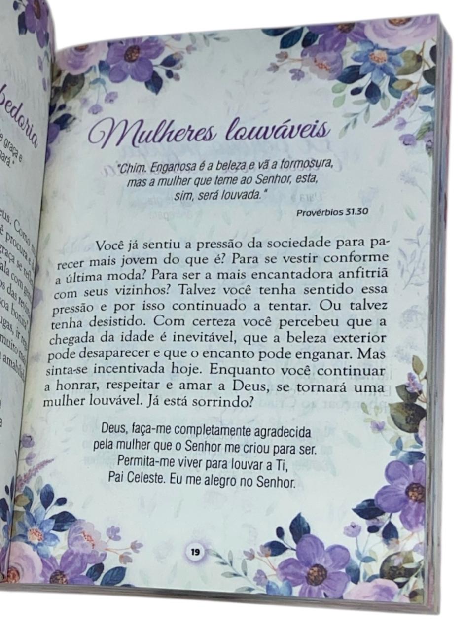 Com reflexões dos Provérbios, mensagens encorajadoras e orações especiais, este devocional é um presente de fé e fortalecimento para mulheres que desejam viver cada dia com mais leveza e sabedoria.