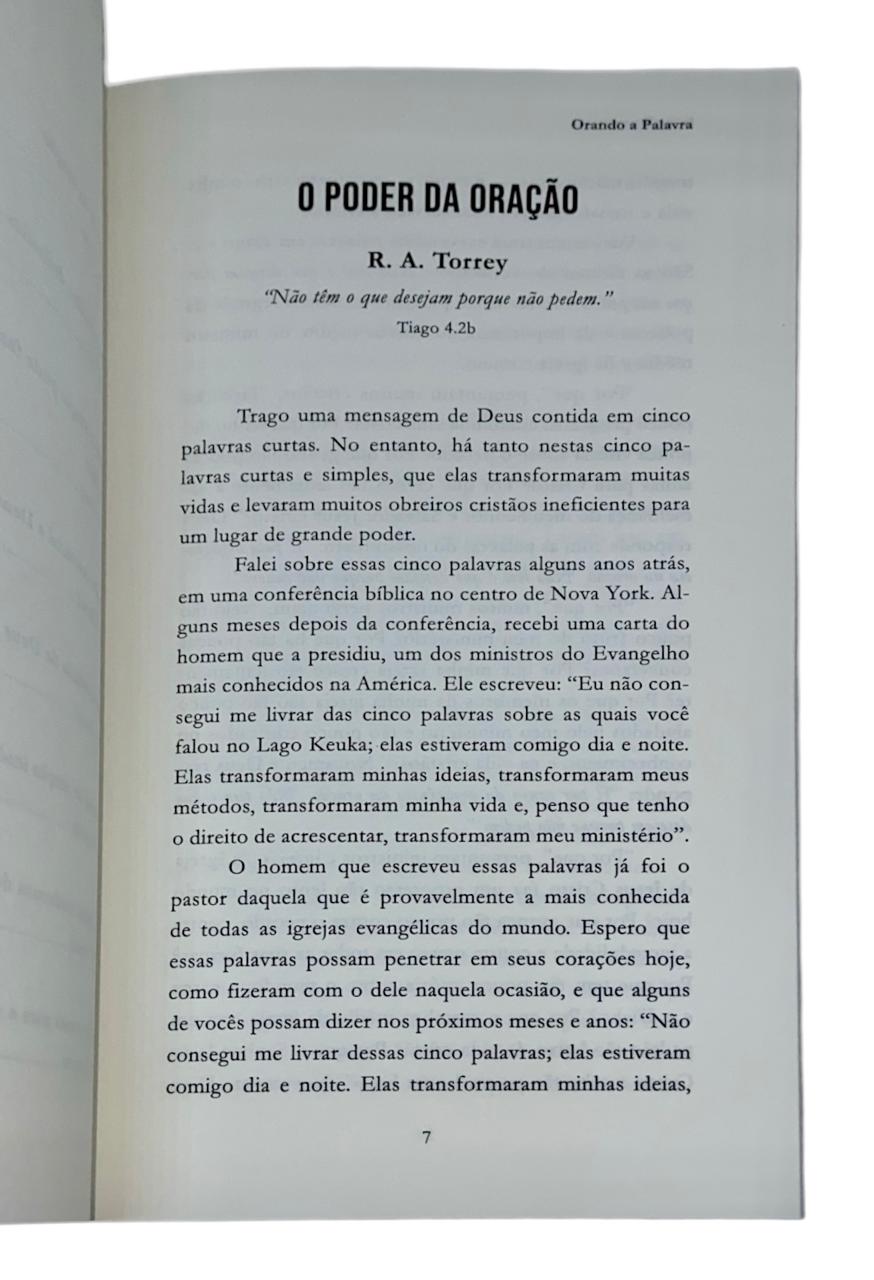 O livro “Orando a Palavra” reúne os ensinamentos de três dos maiores nomes da literatura cristã sobre oração. Esta obra é essencial para quem deseja aprender um orar com base sólida nas Escrituras, desenvolvendo uma comunhão mais profunda, sincera e eficaz com Deus.